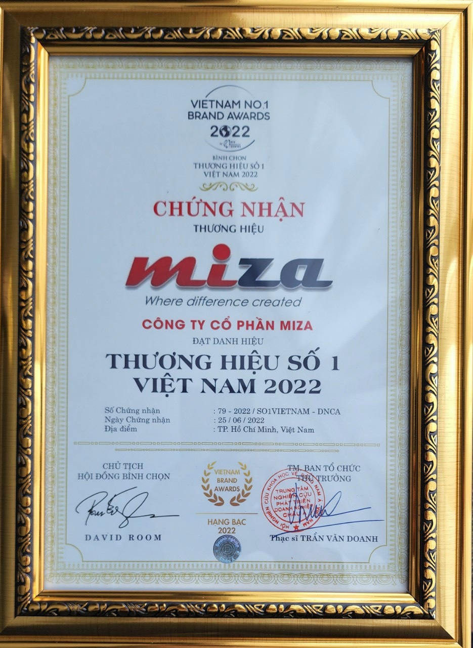 Chứng nhận Công ty Cổ phần Miza đạt danh hiệu "Thương hiệu số 1 Việt Nam 2022"