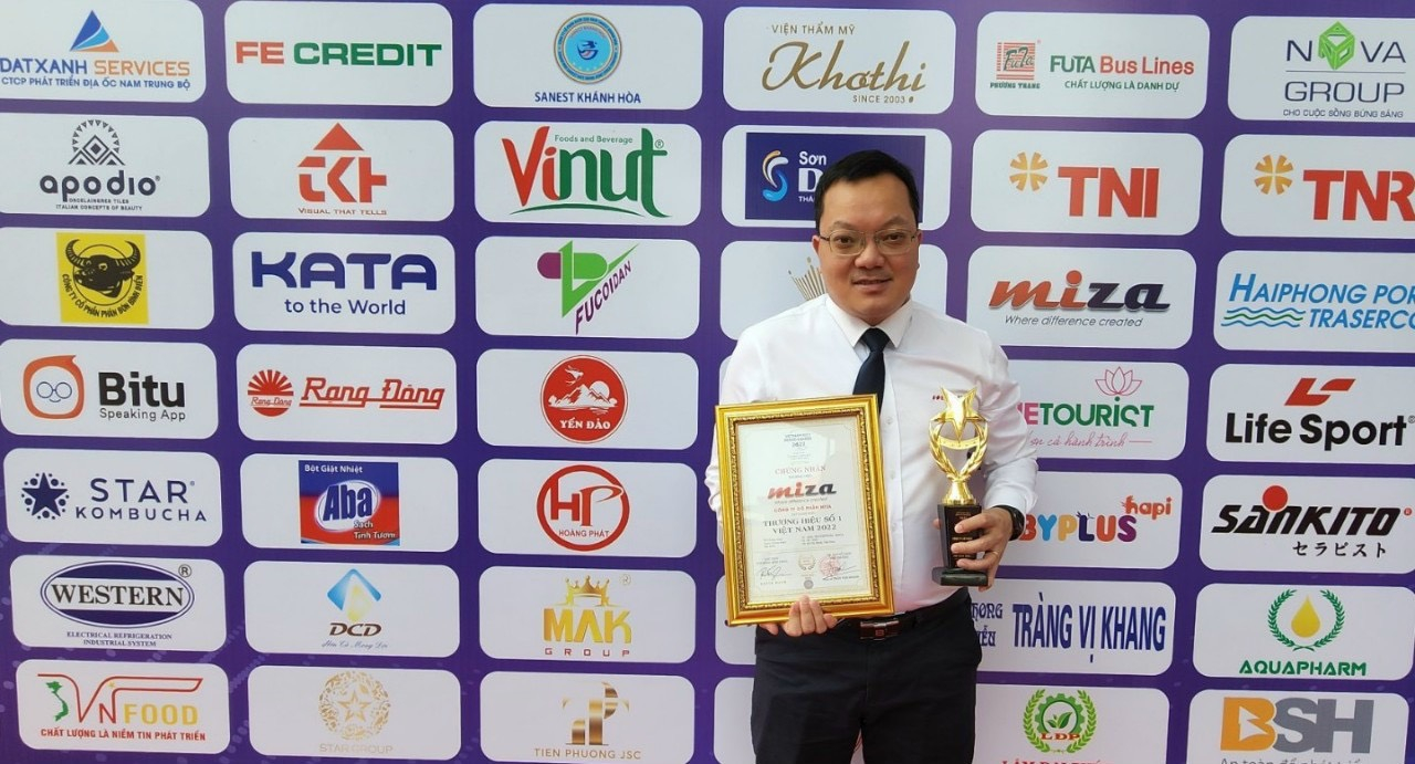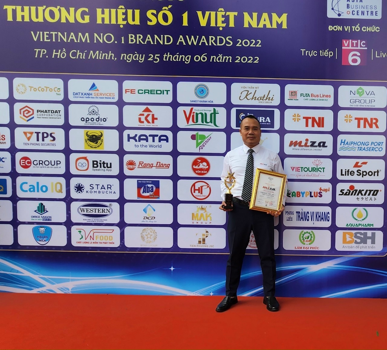 Đại diện Ông Đinh Tiến Ngự Tổng Giám Đốc Công ty Cổ phần Miza nhận giải thưởng TOP 10 - Thương hiệu Số 1 Việt Nam 2022 – Vietnam No.1 Brand Awards 2022.