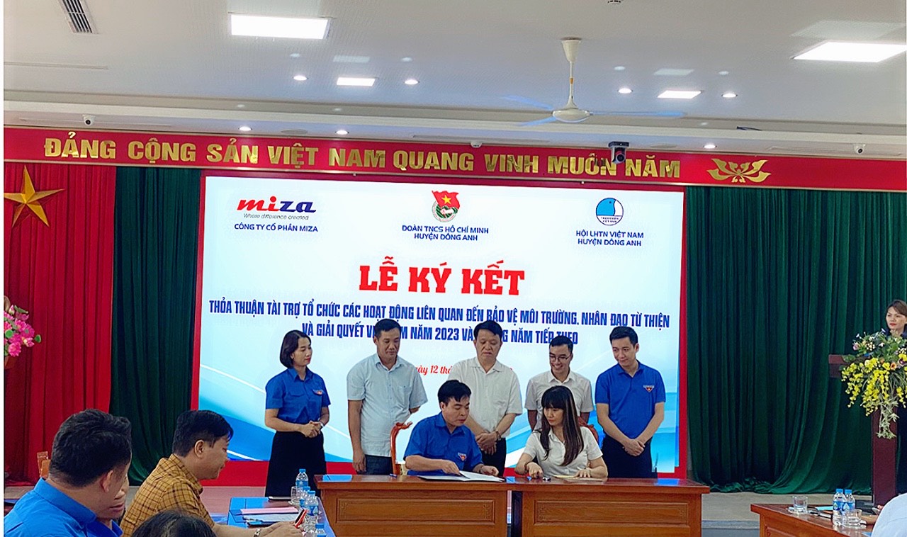 Chiều ngày 12/07/2023 Công ty cổ phần Miza và Huyện Đoàn Đông Anh tổ chức Lễ ký kết thỏa thuận hợp tác và tài trợ các hoạt động liên quan đến bảo vệ môi trường, nhân đạo từ thiện và giải quyết việc làm.